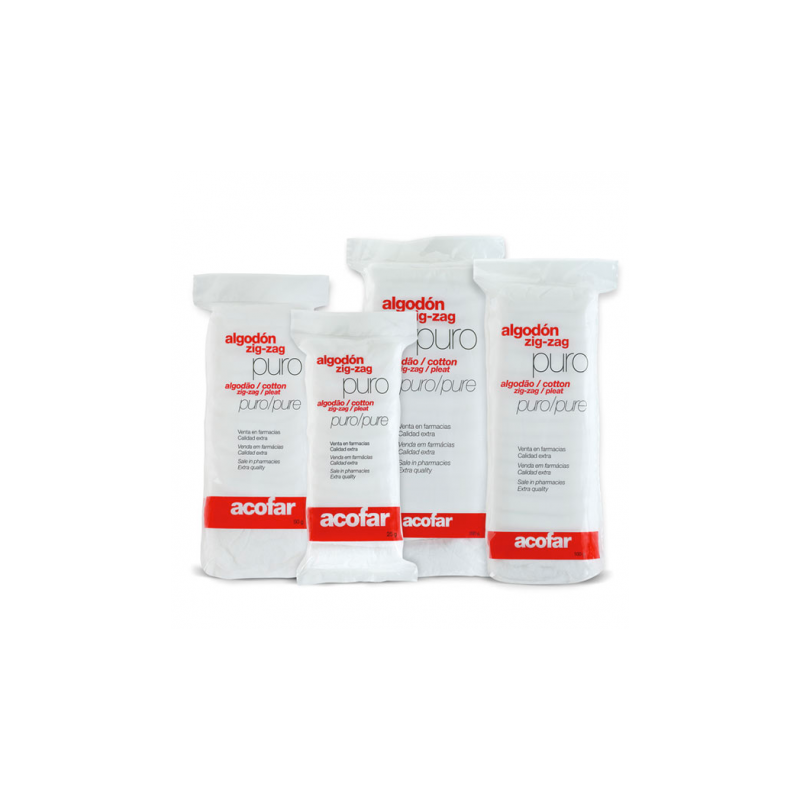 Algodón hidrófilo, presentado en una bolsa de plástico termosellada.