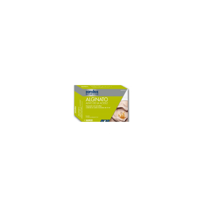 Agua purificada, alginato de sodio, bicarbonato de sodio, carbonato de sodio, carbonato de calcio, aromas, ácido poliacrílico, propil-p-hidroxibenzoato, metil-p-hidroxibenzoato de sodio, sacarina sódica. Adultos y niños mayores de 12 años: 1 ó 2 sobres después de las comidas y al acostarse. Agitar bien antes de usar. Tratamiento del reflujo gastroesofágico para reducir los síntomas relacionados, tales como ardores, pirosis durante el embarazo, esofagitis por reflujo, regurgitación ácida, indigestión, tos, inflamación laringofaríngea.El producto contiene alginato de sodio y carbonatos. Es un producto sanitario cuya actividad se explica por un mecanismo de acción físico. Una vez que se pone en contacto con el pH ácido del estómago, el alginato de sodio (polímero extraído de algas marrones) precipita formando un gel. Los carbonatos liberan dióxido de carbono que permite que el gel flote y forme una balsa que representa una barrera física capaz de prevenir el reflujo de los jugos gástricos en el esófago. Marcado CE. ON: 0373. Clase IIa.