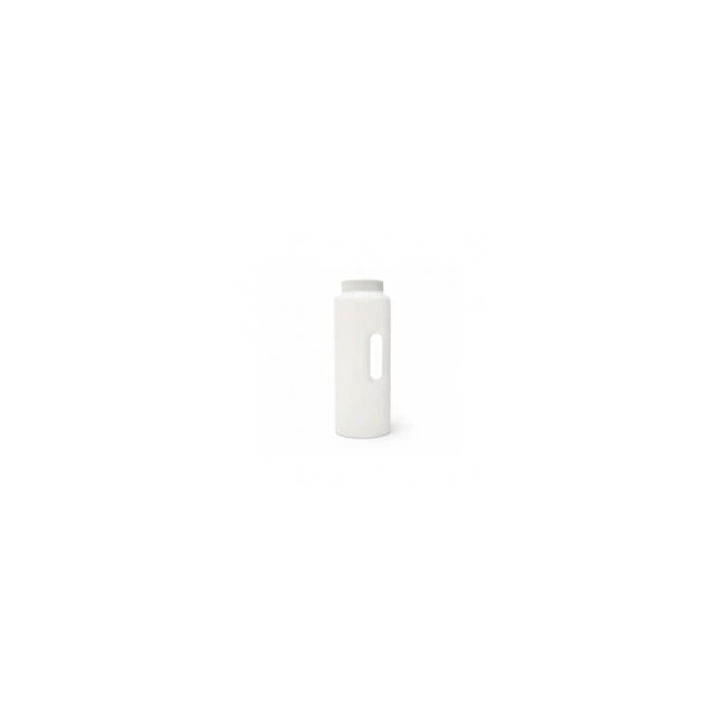 No estéril. Frasco cilíndrico de 2 litros. Cuerpo de color natural translúcido. Incorpora un asa lateral que hace posible el transporte. Cuerpo graduado en relieve cada 50 ml hasta 2000 ml. Graduaciones muy precisas (± 3 ml de desviación), aunque no se trata de instrumentos de precisión calibrados. Dimensiones: - Diámetro interno de la boca: 65 mm - Base: 108 mm - Altura sin tapón: 286,5 mm - Altura con tapón: 287 mm - Capacidad total: 2050 ml Uso hospitalario y en consultas externas, como recipiente de contención, recogida de fluido biológico humano (orina), control volumétrico de la muestra en consultas externas, recogida de orina (24 horas) en pacientes hospitalizados y posterior análisis in Vitro de la misma. Fabricado en polietileno de alta densidad. Tapón a rosca en polietileno de alta densidad, blanco estriado, que incorpora junta de polexan inerte de calidad farmacéutica, garantizando estanqueidad total de forma que ahorra el uso del obturador.