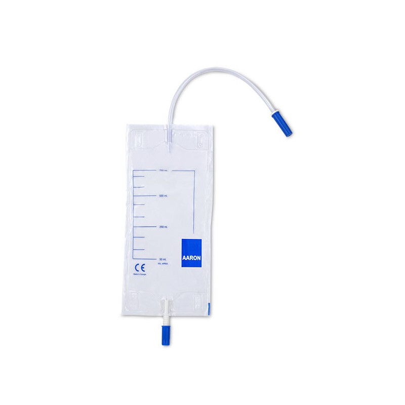 Insertar las dos cintas elásticas en las ranuras situadas en las esquinas de la bolsa de recogida. Doblar hacia arriba la parte inferior de la bolsa de forma que la válvula azul de vaciado quede por la parte exterior de la bolsa. Abotonar las cintas situando la bolsa en la parte inferior de la pierna y por encima del tobillo. Cerciorarse de que la valvula azul de vaciado esté en posición d cierre, esto es, presionando hacia el tubo blanco hasta que haga clic. Para evacuar el contenido, desabotonar la cinta elástica inferior y abrir la válvula de vaciado. En las cajas vienen viñetas explicativas para mejor comprensión.