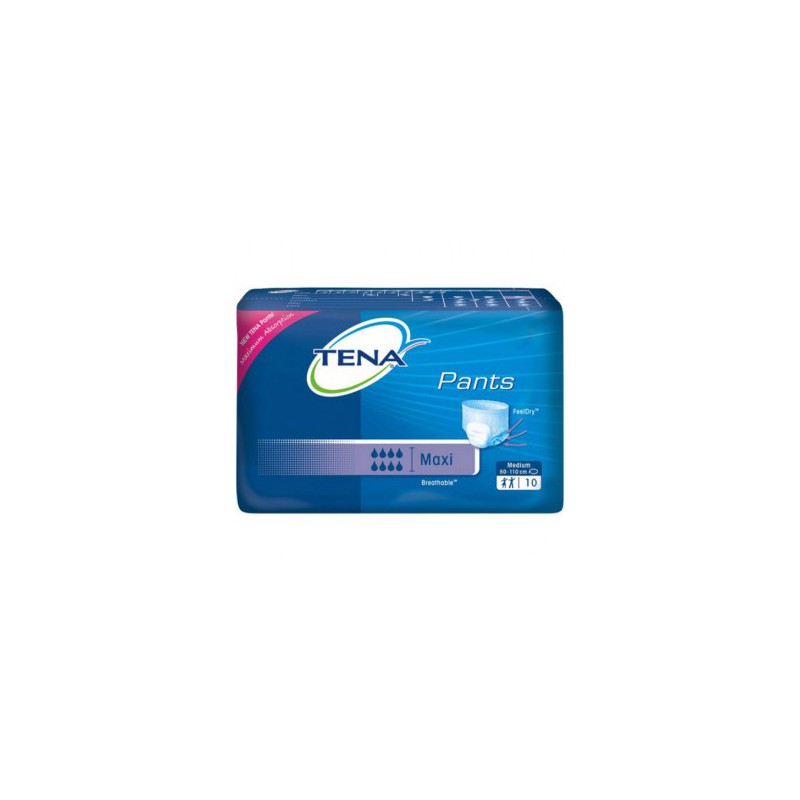 No contiene Látex. Se utiliza como ropa interior (protección). Para hombres y mujeres autónomos con IU grave o muy grave, para el día y la noche. Absorción superior a la Supernoche. Recomendado para un contorno de 80-110 cm (talla mediana) y 100-135 cm (talla grande). TENA PANTS MAXI ofrece una protección extra y mantiene a la persona a la que cuida seca incluso por la noche. Al ser completamente transpirable, es la opción ideal para mantener la piel sana. - Discreto: Su especial diseño, fino en el contorno y estrecho en la entrepierna hace de TENA Pants un absorbente sumamente discreto. - Transpirable y suave con la piel: TENA Pants incluye un material externo totalmente transpirable que permite la circulación del aire. Esto evita una humedad innecesaria, para mantener la piel sana y proporcionar comodidad a la persona a la que cuida. - Uniones laterales que se pueden desgarrar para retirarlo de forma sencilla: TENA Pants es tan fácil de quitar como de poner. Simplemente, desgarre los laterales y quite la prenda. - Neutralizador del olor: La característica Odour Neutralizer reduce el efecto olor de amoniaco, lo que proporciona sensación de frescor y seguridad. Núcleo absorbente: formada por pulpa de celulosa y superabsorbente. Material de soporte: polietileno. Superficie: polipropileno. Material interior: tela sin tejer. Características: capas, banda elástica, tejido transpirable, apariencia de ropa interior, forma de contorno, cinta de deshecho, elásticos de pierna, trepado interior.