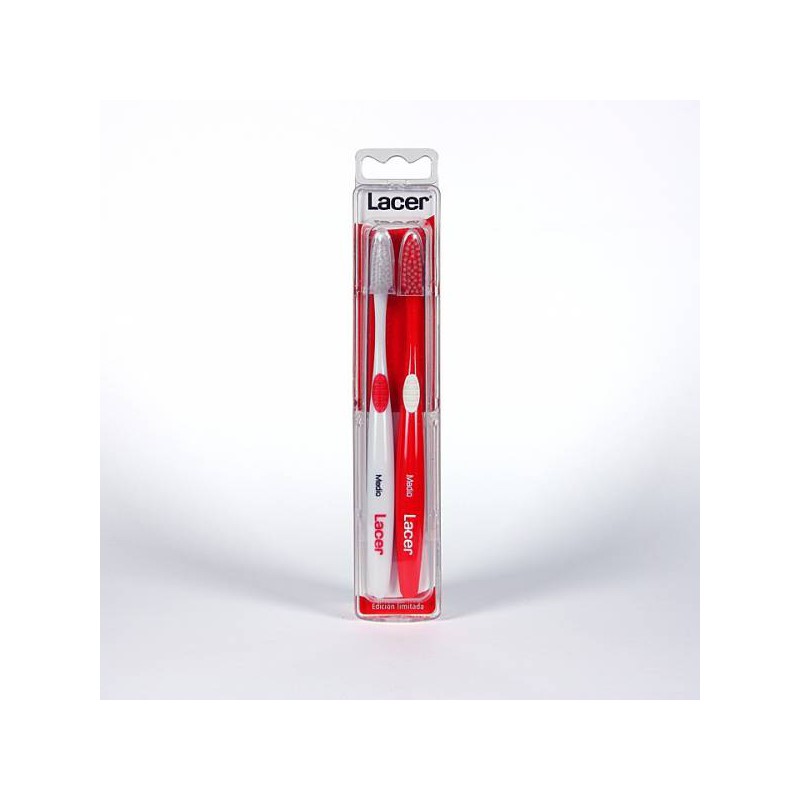 No contiene látex. Cepillo dental para adultos, con filamentos de tynex texturizados de nylon. En todos la altura del recortado de los filamentos es de 10 mm. Tipos de cepillo: - Fuerte: Cabezal compuesto por 38 mechones (filamentos / mechón 39). Parte externa compuesta por 21 mechones (monofilamentos de 0,009 pulgadas de grosor).(monofilamentos de 0,009 pulgadas de grosor). - Medio Cabezal compuesto por 38 mechones (filamentos / mechón 40). Parte externa compuesta por 21 mechones (monofilamentos de 0,008 pulgadas de grosor).(monofilamentos de 0,008 pulgadas de grosor). - Medio Duplo Forma de la cabeza: tamaño medio y forma de diamante Cabezal compuesto por 38 mechones (filamentos / mechón 40). Parte externa compuesta por 21 mechones (monofilamentos de 0.008 pulgadas de grosor). Parte interna compuesta 17 mechones(monofilamentos de 0.008 pulgadas de grosor). Cepillo bimaterial. - Suave: Forma de la cabeza: diamante Cabezal compuesto por 38 mechones (filamentos / mechón 46). Altura del recortado de los filamentos (10 mm). Cabezal: Parte externa compuesta por 21 mechones (monofilamentos de 0,006 pulgadas de grosor). Parte interna compuesta por 17 mechones (monofilamentos de 0,007 pulgadas de grosor). - Extra-suave Cabezal compuesto por 38 mechones (filamentos / mechón 48). Parte externa compuesta por 21 mechones (monofilamentos de 0,005 pulgadas de grosor). Parte interna compuesta por 17 mechones (monofilamentos de 0,004 pulgadas de grosor). - Blanqueante: Tamaño medio y con forma de diamante. Filamentos Embossed Tynex (by Dupont). Cabezal compuesto por 48 mechones. 40 filamentos por mechón. Dureza: medio. Cepillo bimaterial. Características: filamentos Tynex con puntas pulidas redondeadas con extremos texturizados que protegen dientes y encías. Cuello flexible y alargado que permite un fácil manejo llegando a zonas de difícil acceso. Mango anatómico y superficie de amplia sujeción. Su sistema non-slip antideslizante evita que el mango resbale durante el cepillado. Cabezal de reducido tamaño que facilita el cepillado en zonas de difícil acceso. Su forma redondeada evita rozaduras y previene posibles lesiones en las encías y en la mucosa oral.