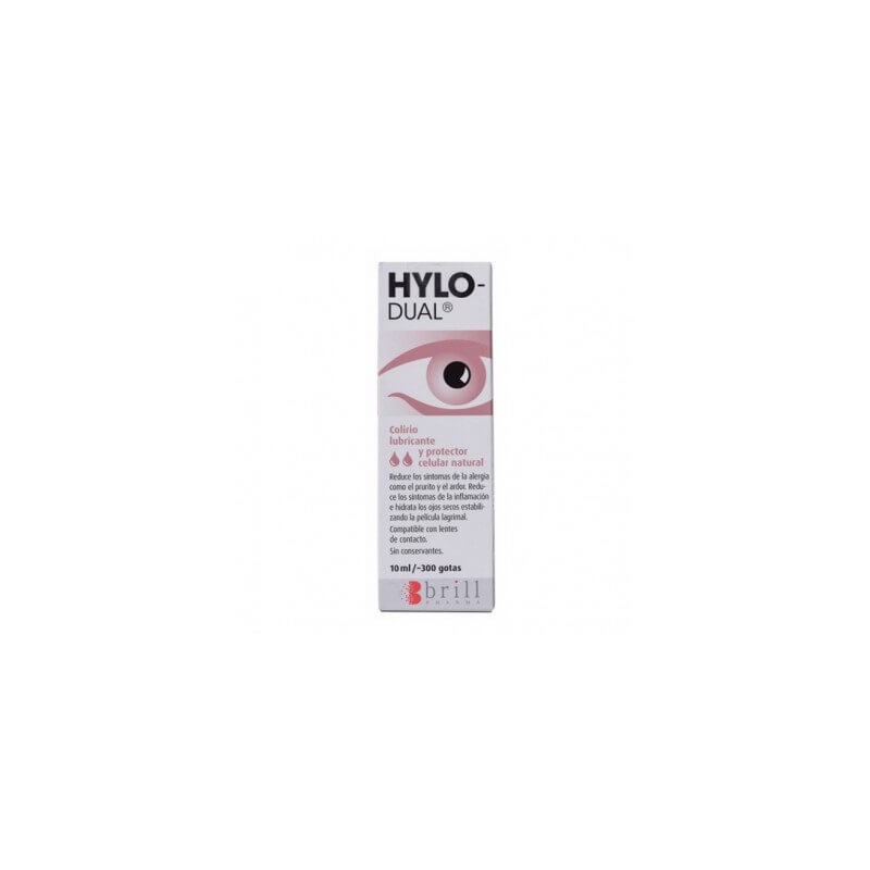 Solución estéril, libre de fosfatos y sin conservantes que contiene 20 mg/ml de ectoína, 0,5 mg/ml de hialuronato de sodio, tampón borato y agua. Use HYLO-DUAL únicamente si el precinto de la caja está intacto antes del primer uso. Retire el tapón antes de cada aplicación. Antes de la primera aplicación, mantenga el envase con la punta hacia abajo y presione la base hasta que aparezca la primera gota en la boquilla. Ahora puede proceder a las siguientes aplicaciones. Evite el contacto de la punta del envase con el ojo o la piel. Tras la aplicación, coloque inmediatamente el tapón. Aplicar una gota de HYLO-DUAL tres veces al día en el saco conjuntival. Si está utilizando otros productos oftálmicos, espere al menos 30 minutos entre aplicaciones. HYLO-DUAL deberá ser siempre el último en aplicarse. Sin embargo, las pomadas oftálmicas siempre deben administrarse después de usar HYLO-DUAL. No se dispone de información sobre el uso de HYLO-DUAL durante el embarazo ni durante el período de lactancia. No debería aplicarse en casos de hipersensibilidad a alguno de sus componentes. Caducidad: 1 año. Colirio que previene y alivia los síntomas oculares de la alergia como prurito y ardor. Reduce los síntomas de la inflamación e hidrata los ojos secos estabilizando la película lagrimal. Compatible con lentes de contacto duras y blandas. Puede aplicarse hasta 6 meses después de su apertura. Marcado CE. ON: 0197. Clase I, estéril.