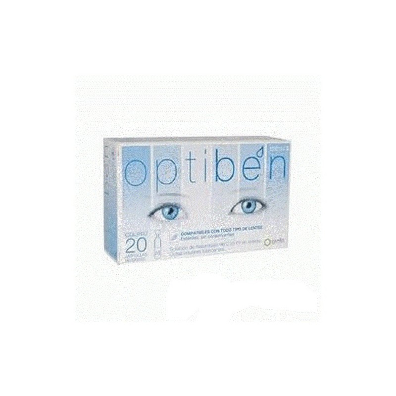 Hialuronato de sodio (0,20 g), cloruro de sodio, dihidrogenofosfato de sodio dihidrato, hidrogenofosfato de disodio y agua para preparaciones inyectables. Deposite 1 o 2 gotas en cada ojo cuando lo necesite. Lávese las manos antes de usar la solución. Retire de la tira un envase de un solo uso y gire la parte superior para abrirlo. No toque el párpado ni la superficie del ojo con la punta del envase. Para usar optibén ojos secos: Deposite 1 o 2 gotas de optibén ojos secos en el párpado inferior y parpadee varias veces para que todo el ojo quede cubierto por el líquido. Para usuarios de lentes de contacto: Se recomienda usar optibén ojos secos antes de colocarse las lentes de contacto. También se pueden aplicar 2 gotas de optibén ojos secos en cada lente antes de colocarlas, para mejorar la comodidad. Para lubricar las lentes durante su uso, deposite 1 o 2 gotas de optibén ojos secos en cada ojo cuando lo necesite o según la prescripción de su médico. Antes de usarlo, compruebe que el envase de un solo uso no está dañado. No toque el párpado ni la superficie del ojo con la punta del envase. Tire la solución que no haya utilizado inmediatamente después de abrir el envase. No reutilice un envase de un solo uso abierto. No utilice optibén ojos secos después de la fecha de caducidad indicada en la caja. Este producto no contiene conservantes. Reutilizarlo una vez abierto tiene el riesgo de administrar una solución contaminada. Manténgase fuera del alcance de los niños. En caso de usar algún tratamiento simultáneamente, no administre optibén ojos secos al mismo tiempo que otros colirios. Si persisten las molestias durante el uso de optibén ojos secos o si reaparecen al interrumpir el tratamiento, quítese las lentes de contacto y consulte a su oftalmólogo. Hipersensibilidad a cualquiera de los componentes del producto.Cuando se usa de la forma recomendada no causa efectos adversos ni tiene contraindicaciones conocidas. Consérvese a temperatura inferior a 25 ºC. Después de abrir el sobre, mantenga la dosis unitaria protegida de la luz. Indicado en casos de sensación de sequedad del ojo y otras molestias leves sin importancia patológica, así como en la sensación de quemazón y fatiga ocular inducida, por ejemplo, por polvo, humo, calor seco, aire acondicionado, trabajo prolongado ante el ordenador o uso de lentes de contacto. En un estudio se ha demostrado que optibén ojos secos es compatible con todo tipo de lentes de contacto. Es una solución lubricante y humectante que lubrica las lentes de contacto antes de introducirlas en el ojo. También se puede usar mientras se llevan las lentes de contacto. Proporciona a la superficie ocular un recubrimiento estable y blando que evita el parpadeo. Por lo tanto, su uso garantiza un alivio prolongado con la máxima comodidad. Contiene hialuronato sódico, un polímero natural que también se encuentra en los tejidos oculares. Su capacidad para retener agua es esencial en el mantenimiento de la película de lágrima. La formulación equilibrada de optibén ojos secos permite ajustar su pH y osmolaridad a valores similares a los de la lágrima y confiere al producto propiedades irrigantes, refrescantes y calmantes para ojos sensibles. La formulación sin conservantes refuerza la excelente tolerancia ocular a largo plazo de optibén ojos secos, lo que permite su uso diario regular. Cuando se instila, optibén ojos secos alivia los ojos doloridos como consecuencia de la irritación, el cansancio y la sequedad ocular que provocan la contaminación, los ambientes cargados de humo o con aire acondicionado o el trabajo ante la pantalla del ordenador. Está especialmente recomendado para usuarios de todo tipo de lentes de contacto (duras o blandas) como solución lubricante antes y durante el uso de las lentes.Marcado CE. ON: 0459. Clase IIb, estéril.