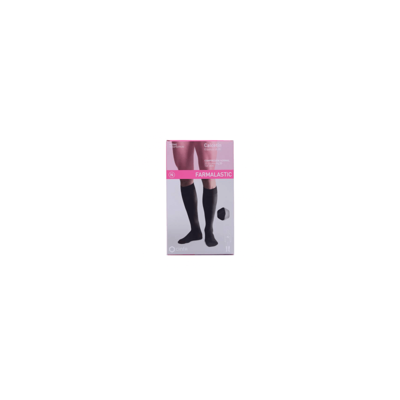 Dar la vuelta al calcetín y colocarlo al revés. Introducir el pie hasta llegar al talón. Ir subiendo progresivamente le calcetín dejándolo bien repartido a lo largo de la pantorrilla. En caso de duda entre dos tallas, utilizar siempre la mayor. Enfermedades arteriales.Alergias a los materiales de la media. Lavar a mano con jabón neutro y con el agua a una temperatura inferior a 30ºC.Al secar no exponerlas al sol, radiadores ni cualquier otra fuente de calor.No planchar.El contacto con la prenda con cremas o aceites deteriora las fibras elásticas haciéndolas menos elásticas y más débiles. Tejido tupido que favorece la transpiración gracias al elevado contenido en algodón. El puño especial anti-press garantiza que el calcetín no se deslice de su sitio y a la vez no se clave.Para: Insuficiencia venosa crónica (IVC). Varices tronculares. Varicosis primaria con edema. Antes y después de una fleboextracción. Antes y después de una esclerosis venosa. Tromboflebitis. Edema post-trombótico. Angiodisplasia. Ulceraciones venosas en caso de no tolerancia a la comprensión fuerte. Es conforme a la clasificación CEAP 2 y 3. Materiales de fabricación: Poliamida: 44% Algodón: 38% Elastómero: 18%