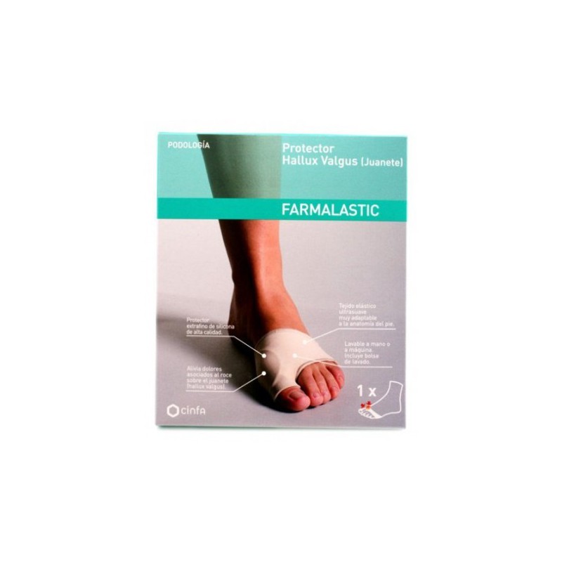 Este producto es para uso diurno, actúa dinámicamente durante la marcha y es eficaz cuando se utiliza de forma continuada. Puede utilizarse indistintamente en el pie derecho o izquierdo. Pasar el empeine por la banda. Encapuchar el primer dedo, que la pastilla de silicona más gruesa quede detrás del juanete. Ajustar la tensión sobre el dedo tirando con suavidad de la banda hacia el tobillo, el 1er día tensionar poco y aumentar hasta llegar al máximo a los 10 días. No utilizar si el 1er dedo del pie ya no puede moverse lateralmente. No utilizar en caso de presentar alergia a alguno de los materiales que la componen ni sobre heridas abiertas. En personas que padezcan diabetes, arteritis, polineuritis, neuropatía de los miembros inferiores o úlceras varicosas, consultar con su médico y vigilar durante la utilización. Lavar a mano sin frotar o a máquina (máx. 30º) utilizando la bolsa de lavado adjunta. Al secar no exponer al sol, radiadores ni cualquier otra fuente de calor. No planchar. El contacto de la prenda con cremas o aceites deteriora las fibras haciéndolas menos elásticas y más débiles. Ayuda a corregir y limitar la evolución el juante (Hallux Valgus) y contribuye a aliviar los dolores articulares relacionados y los ocasionados por el roce. El corrector de juanete, patentado a diferencia de los correctores rígidos, se utiliza durante la jornada gracias a su diseño flexible y ultra-fino. Realinea el 1er dedo del pie con forma regulable y también el 1er metatarsiano, a la vez que ayuda a aliviar el dolor, tanto articular como por roce. Llevándolo a diario con cualquier tipo de calzado, no sólo corrige y ayuda a aliviar el dolor, también limita la progresión del juanete. Silicona 58%, poliamida/elastano 42%.Producto sanitario. Clase I.