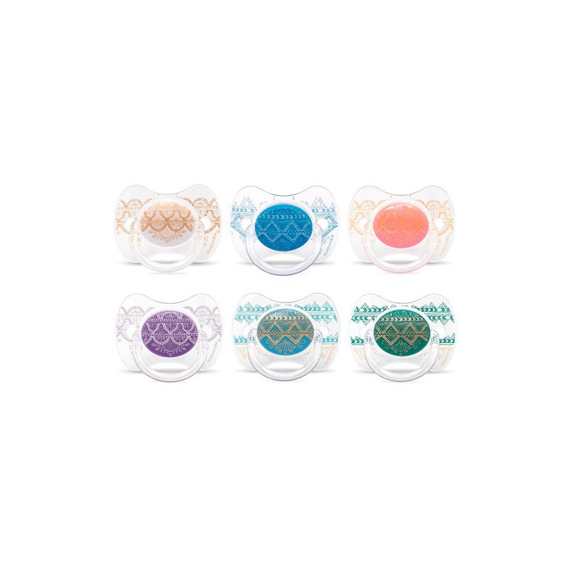 ¡ADVERTENCIAS! Para la seguridad del bebé:- Nunca sujetar cintas o cuerdas al chupete, su bebé podría estrangularse con ellas.- Inspeccionar cuidadosamente el chupete, especialmente cuando el niño tiene dientes. Tire del chupete en todas direcciones. Desechar el chupete a los primeros síntomas de deterioro o fragilidad."No dejar el chupete expuesto a la luz solar directa o cerca de una fuente de calor, ni en contacto con un desinfectante (solución esterilizante) durante más tiempo del recomendado, puesto que esto puede dañar la tetina.Mantener el protector separable de la tetina fuera del alcance de los niños para evitar asfixia.Antes del primer uso, mantener el chupete en agua hirviendo durante 5 min., dejarlo enfriar, y extraer del chupete todo el agua retenida. Esto es por razones de higiene.- Limpiar antes de cada uso.- No introducir nunca la tetina en sustancias dulces, podría provocar caries al niño, ni medicamentos.- Cambie el chupete después de uno o dos meses de uso, por razones de seguridad e higiene.- En caso de que el chupete llegara a quedarse alojado en la boca del bebé, NO SE DEJE LLEVAR POR EL PÁNICO, el diseño de este chupete impide que su bebe se pueda ahogar.Sacar el chupete de la boca con cuidado, tan delicadamente como sea posible.